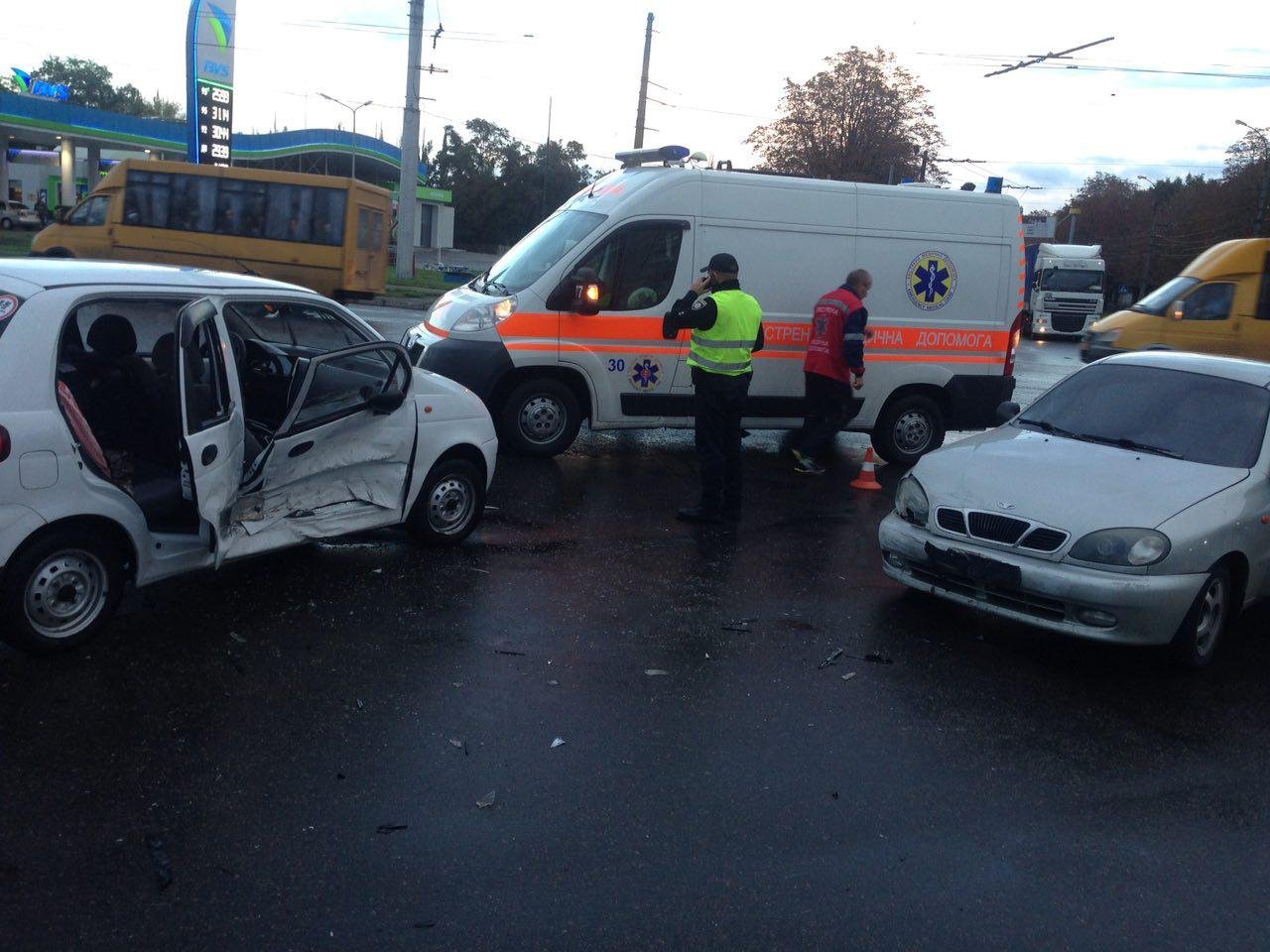В Кременчуге Lanos врезался в Matiz. Как сообщает пресс-служба Кременчугского отдела полиции, ДТП произошло на перекрестке ул. Вадима Пугачева и ул. Киевской вечером 25 сентября.