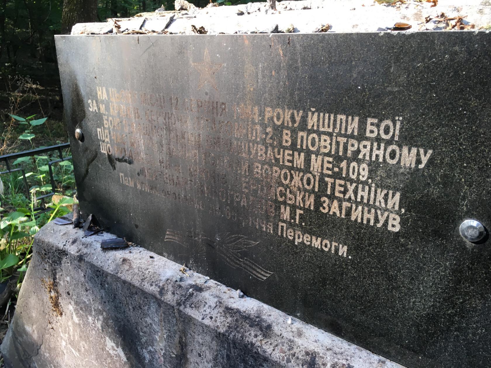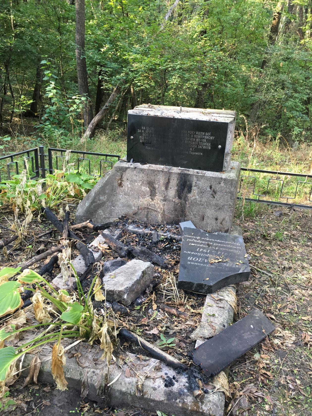 Под Кременчугом вандалы разрушили памятник на могиле лётчика Николая Виноградова, который погиб в августе 1941 года в боях за город. О факте вандализма сообщил «Телеграфу» директор Кременчугского музея авиации и космонавтики Анатолий Бышенко. По его данным, преступление произошло несколько дней назад. Судя по следам на могиле, вандалы разожгли прямо на ней костёр.