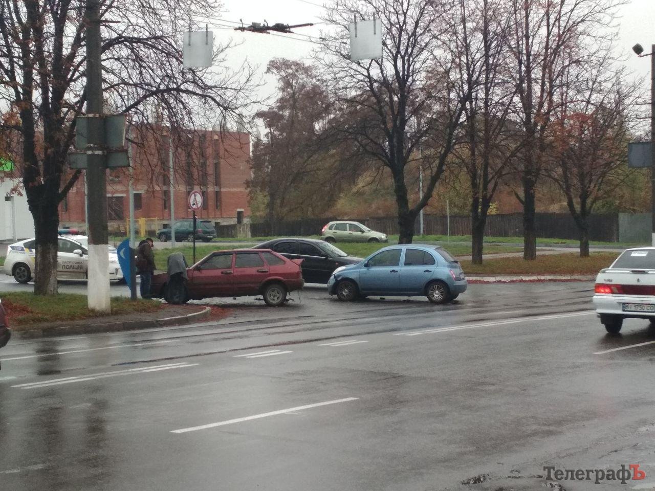 Утром 26 октября на ул. Вадмиа Пугачёва в Кременчуге произошло ДТП. Как сообщают очевидцы, при въезде на территорию АЗС BVS столкнулись ВАЗ-2109 и Nissan Micra. Последний указанный автомобиль въехал в заднюю часть ВАЗа.