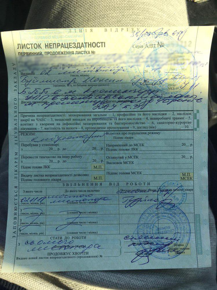 В то же время М. Буймистр предоставил фото своего больничного редакции «Телеграфа».