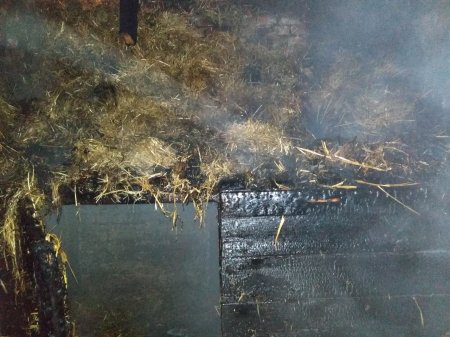 В пожаре также погибло трое недельных поросят. Огонь уничтожил крышу на площади 30 кв. м, деревянную оградку и 40 кг соломы.