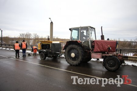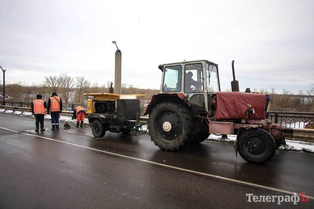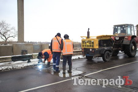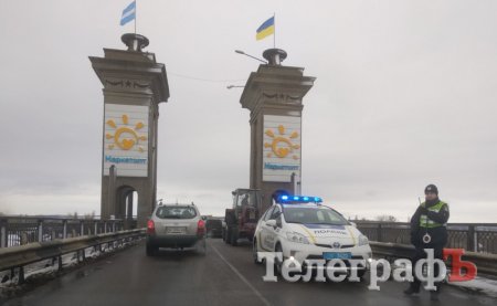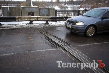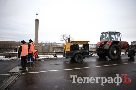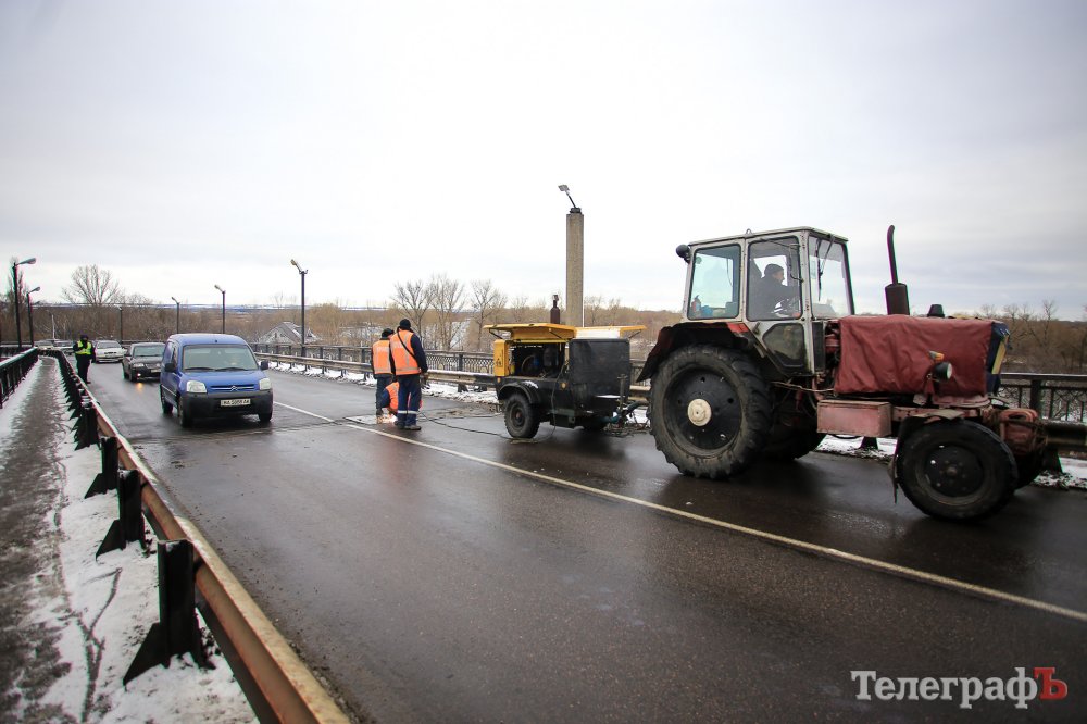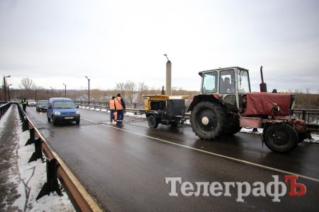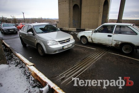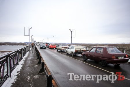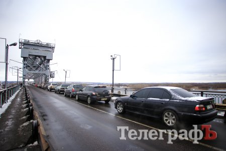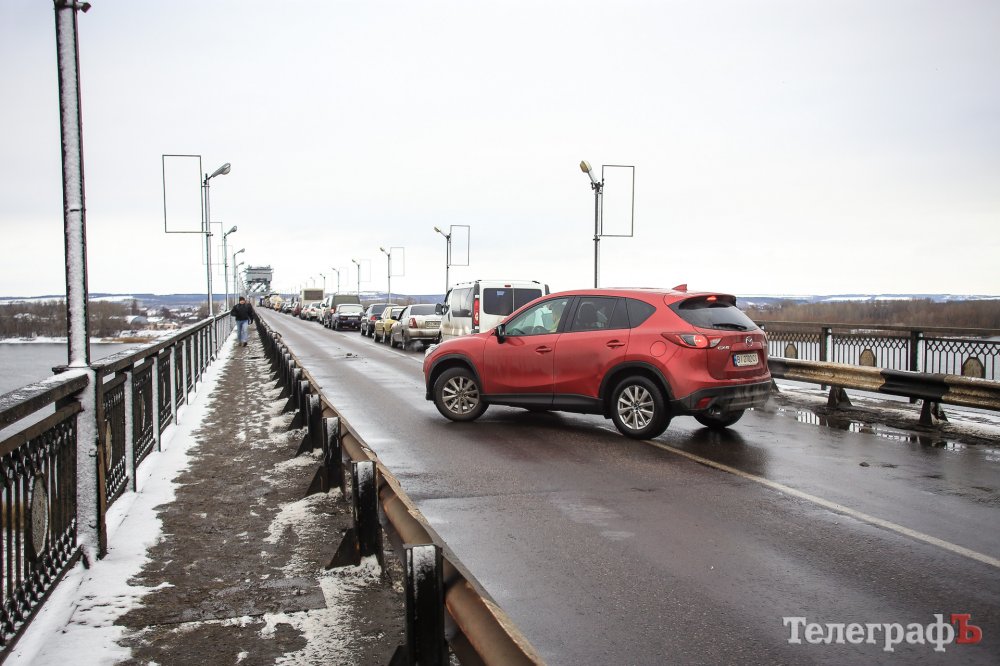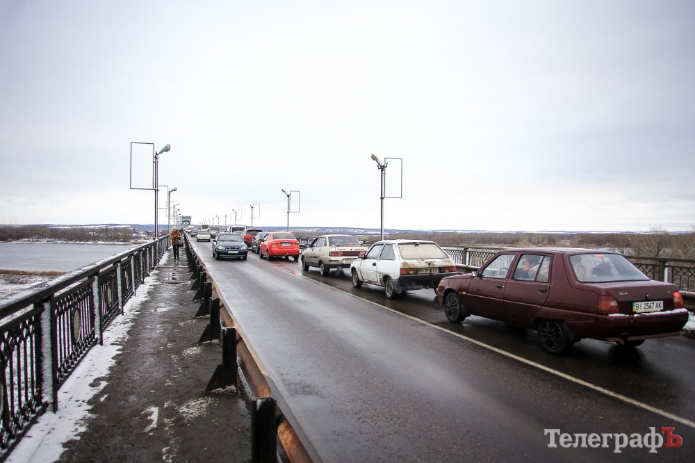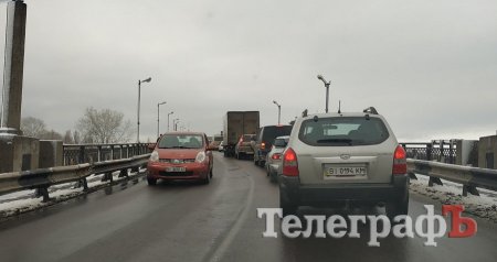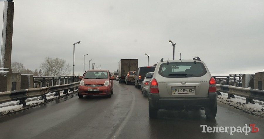 В Кременчуге на мосту тянучка. Это связано с частичным перекрытием моста в связи с ремонтом деформационного стыка.