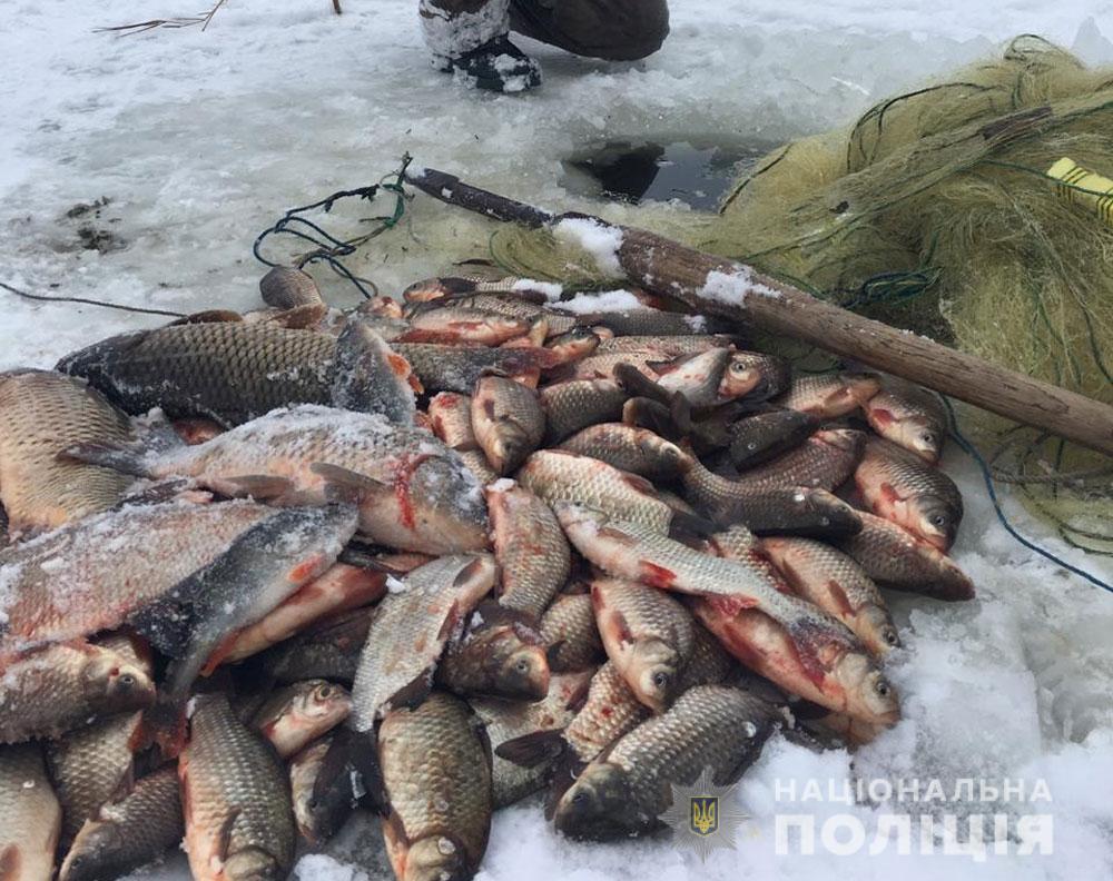 На Кременчугском водохранилище поймали браконьера с сеткой. Как сообщают в Главном управлении Национальной полиции в Полтавской области, 28-летнего рыбака задержали с пешней, которой он рубил лёд, сеткой и 18 килограммами рыбы.