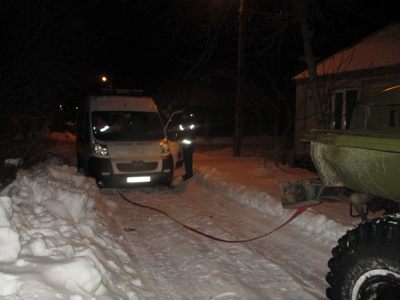 Кременчугские спасатели буксировали «скорую», застрявшую в сугробе. Как сообщает горрайонное управление Государственной службы чрезвычайных ситуаций, это произошло 7 января в 4.18 утра на перекрестке тупика Сенного и переулка Василия Стефаника (Чередники).