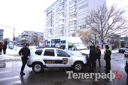 В Кременчуге еще одна машина службы охраны въехала в еще одну маршрутку. Авария произошла на перекрестке ул. Шевченко и ул. Игоря Сердюка.