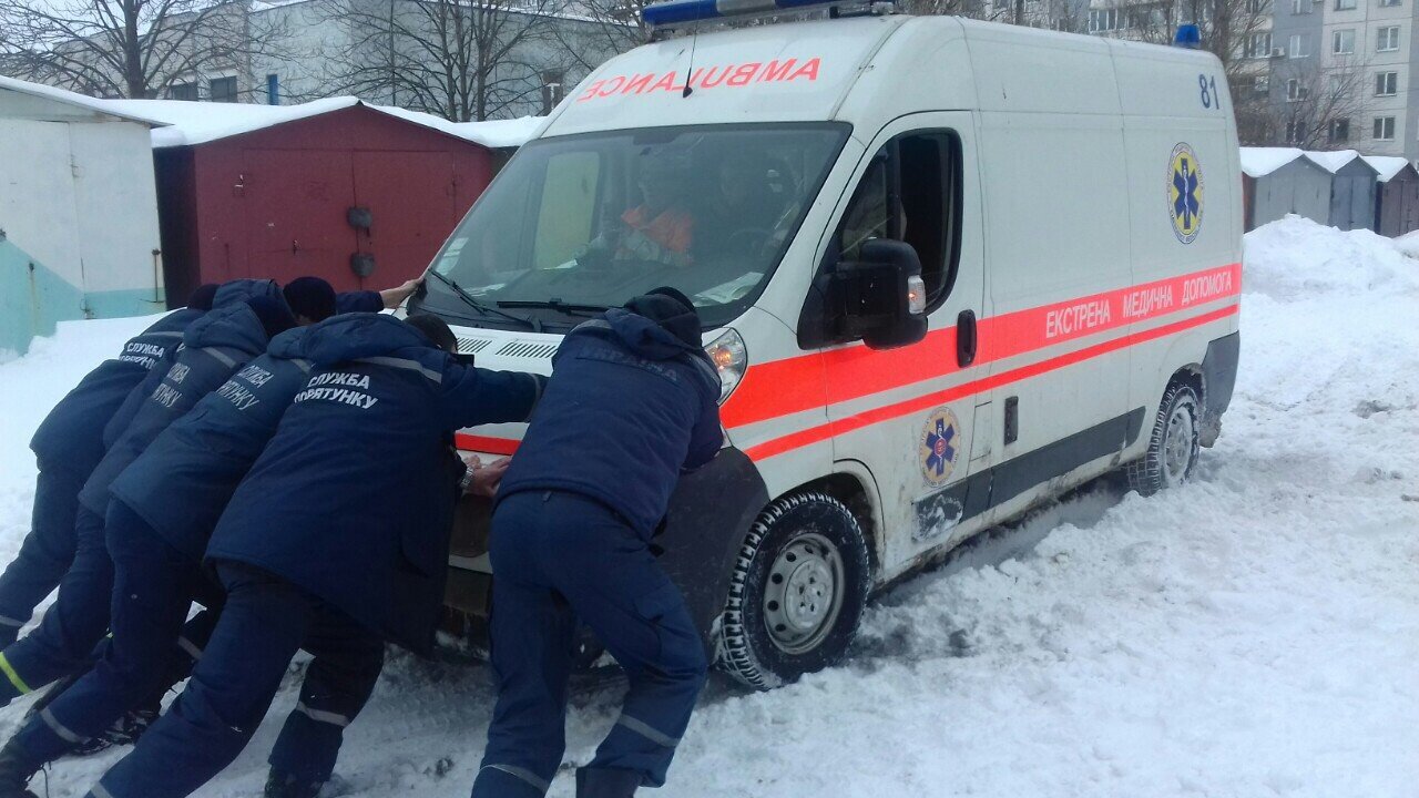 Кілька годин тому «швидку» відбуксирували в районі будинку 56 по проспекту Лесі Українки.