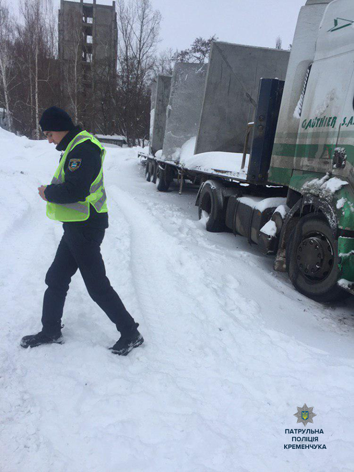 Сьогодні, 24 січня, під час патрулювання по вулиці Київській поліцейські помітили вантажівку, з якої з’їхали бетонні плити. За інформацією патрульної поліції Кременчука у Фейсбуці, у процесі допомоги та спілкування з 52-річним водієм вантажного авта патрульні помітили ознаки алкогольного сп’яніння: запах алкоголю з порожнини рота, порушення мови та координації рухів.