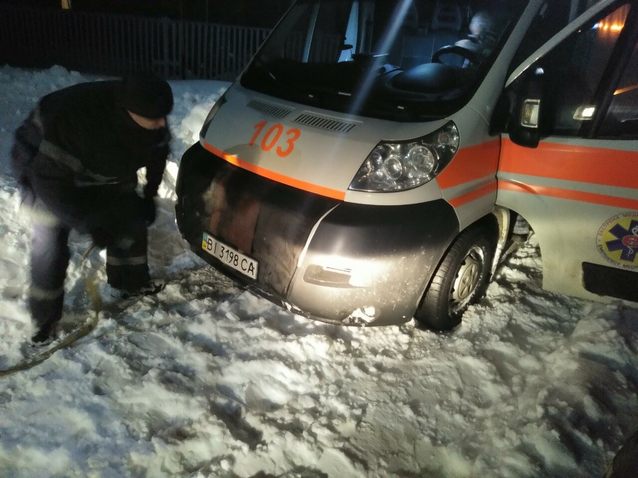 За прошедшие сутки 24-25 января в Кременчуге в сугробах застряли пять карет скорой помощи. По информации службы 1563, спасатели трижды выезжали на Молодёжный и два раза в Крюков.
