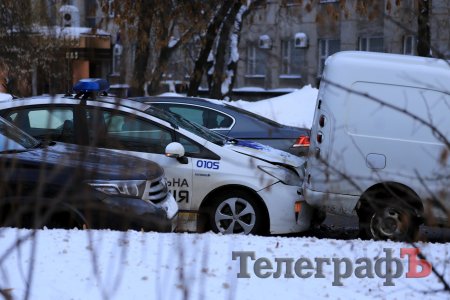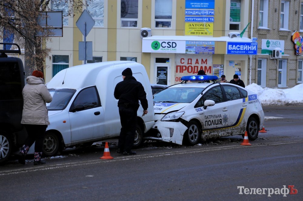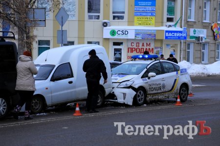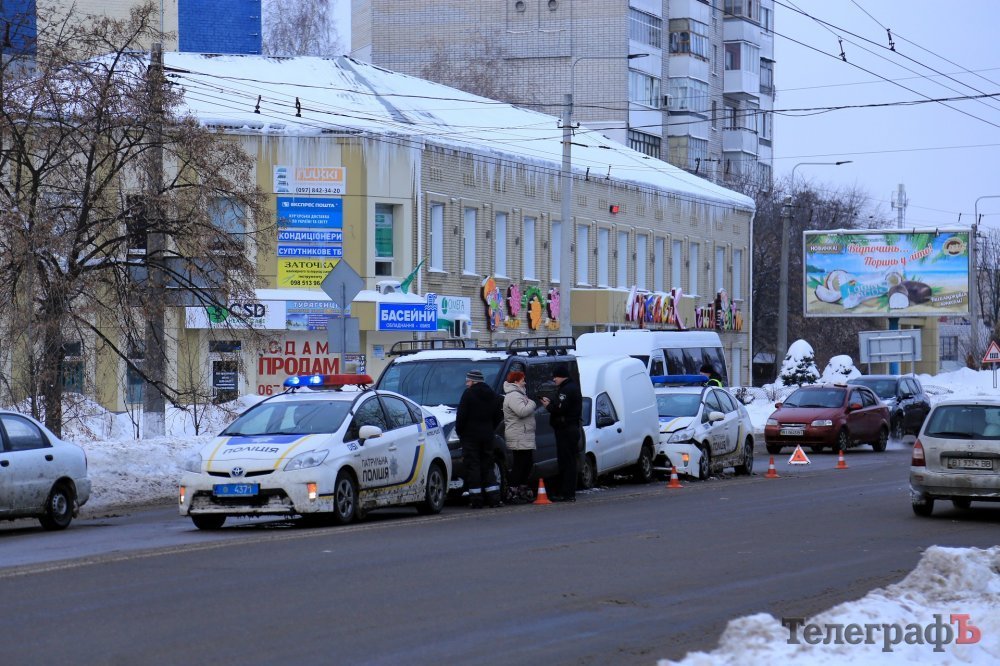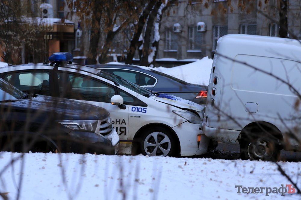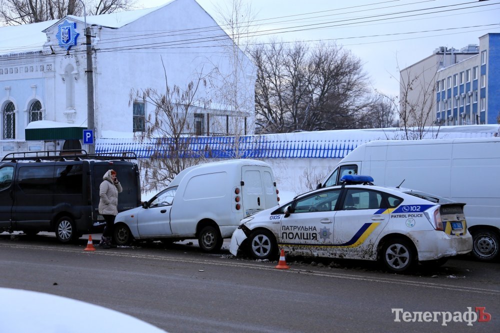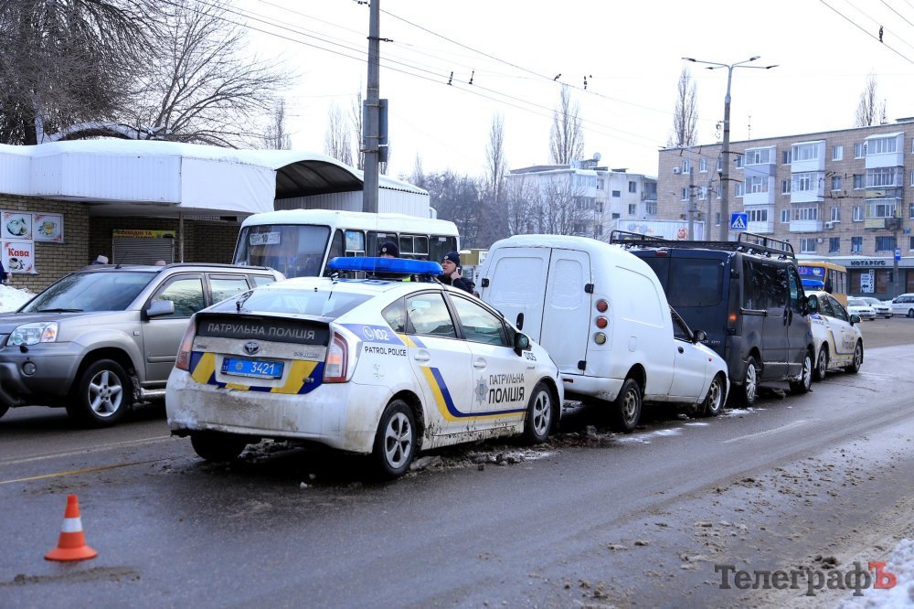 В Кременчуге патрульный автомобиль Toyota Prius въехал в «пирожок». Как сообщают очевидцы, ДТП произошло в районе перекрёстка проспекта Свободы и ул. Игоря Сердюка. В левой полосе стоит микроавтобус, в него въехал «пирожок», а третьим пристроился полицейский автомобиль.