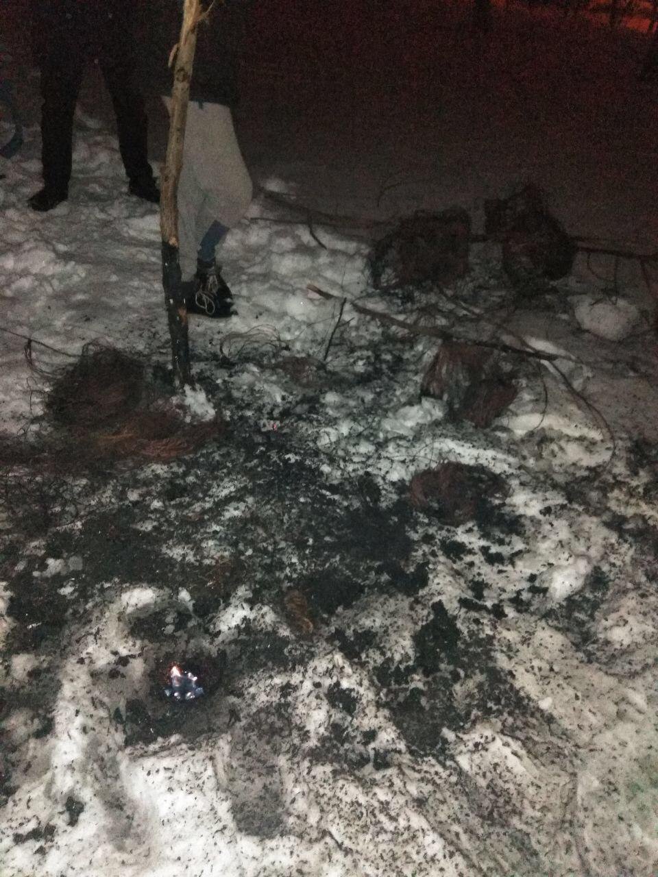 На місці виявили осіб 19-ти, 21-го та 26-ти років, які палили кабель. За попередньою інформацією, це був кабель «Київстара».
