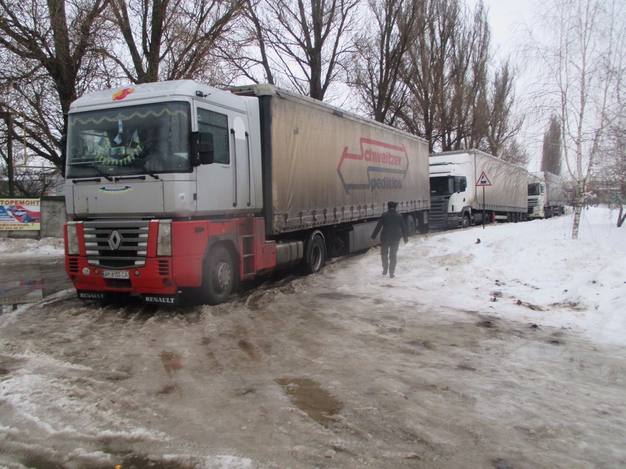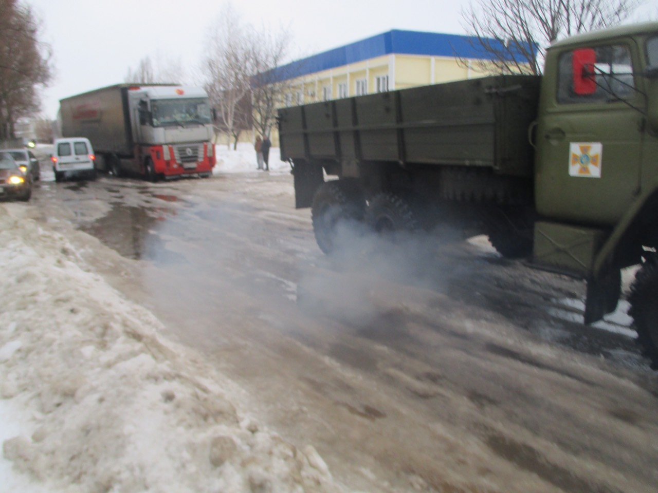 Вранці 30 січня на перехресті вулиць Профспілкової та Кондратюка два вантажних автомобілі перекрили рух транспорту, тому що не змогли «впоратися» з ожеледдю. Про це повідомляє міськрайонне управління ДСНС.