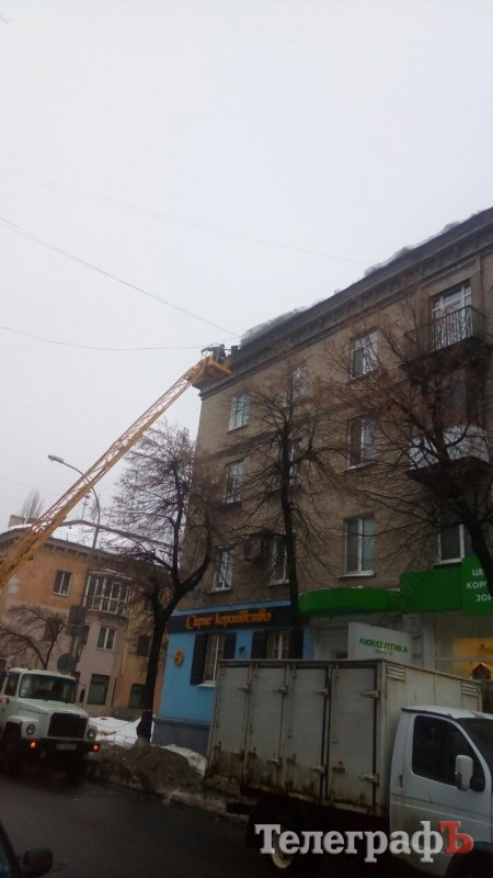 С крыши дома №29/2, что на улице Соборной, сотрудники управляющей компании «Місто для людей. Кременчук» сняли металлическое ограждение, которое грозило упасть на тротуар. Как сообщили в управляющей компании, им поступила заявка от одного из магазинов, что с крыши свисает ограждение. Оказалось, что его «вывернуло» глыба из снега и льда, образовавшаяся на крыше дома.