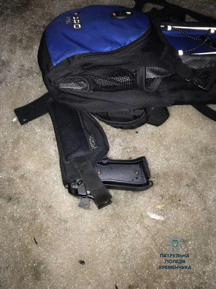 Поліцейські прибули на місце події та побачили чоловіка, який схожий за описом заявника. У результаті поверхневої перевірки знайшли пістолет та ніж.