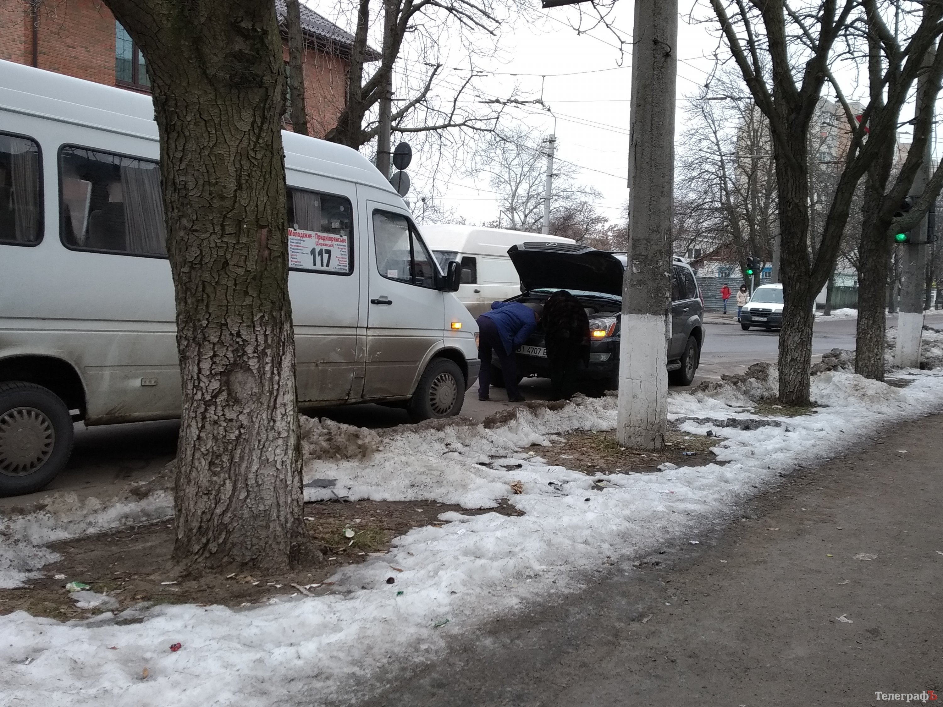 У Кременчуці, на вулиці Небесної сотні, неподалік від перехрестя з Троїцькою, сталося ДТП. «Лоб в лоб» зіштовхнулися маршрутка та легковик марки «Лексус».