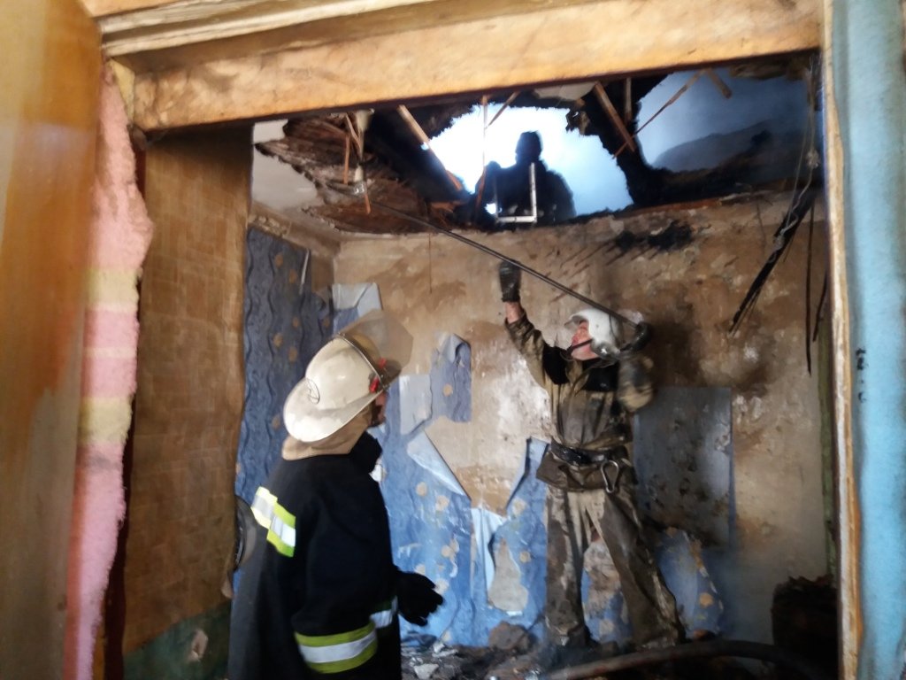 Огонь уничтожил перекрытие крыши (21 кв м), повредил 10 кв м кровли между квартирами. Причина пожара устанавливается.