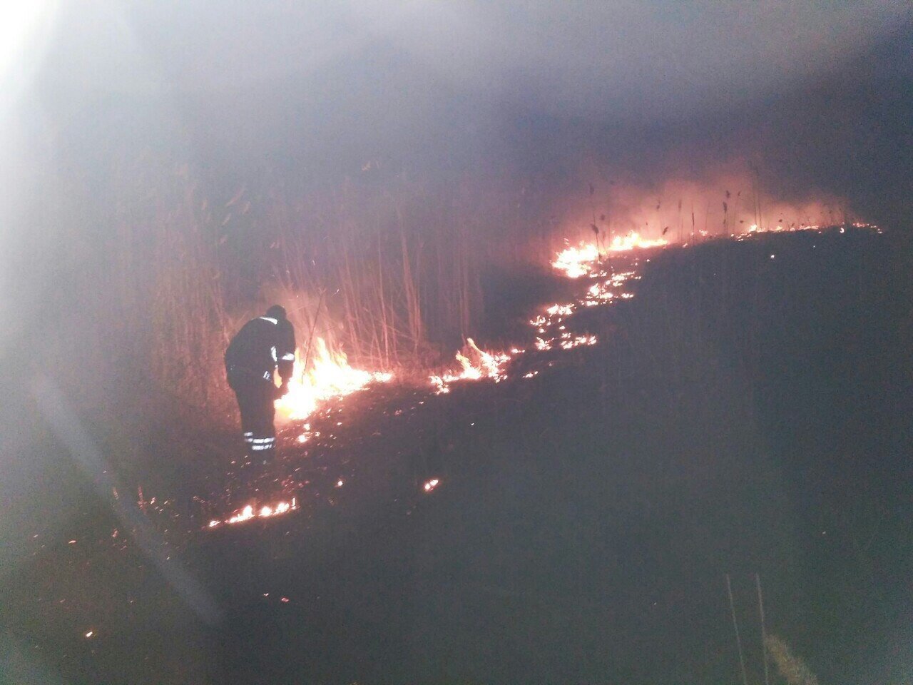 Пізніше, о 18.46, рятувальникам стало відомо про пожежу поблизу будинку 164 по проспекту Полтавському. У результаті вигоріло 3,7 га очерету.
