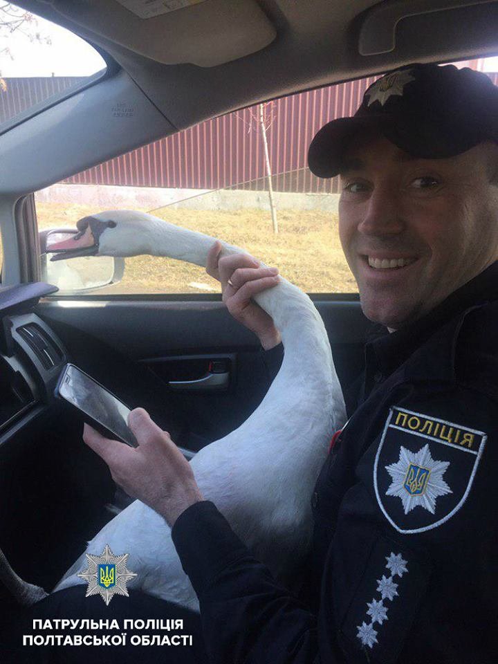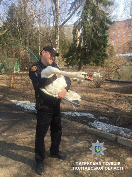 На вихідних полтавські патрульні рятували лебедя, повідомляє прес-служба патрульної поліції.