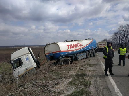 30 марта на 65-ом километре трассы М-22 под Кременчугом бензовоз DAF слетел с дорроги в кювет. Как сообщили в патрульной полиции Кременчуга, инспекторы обнаружили машину во время патрулирования.