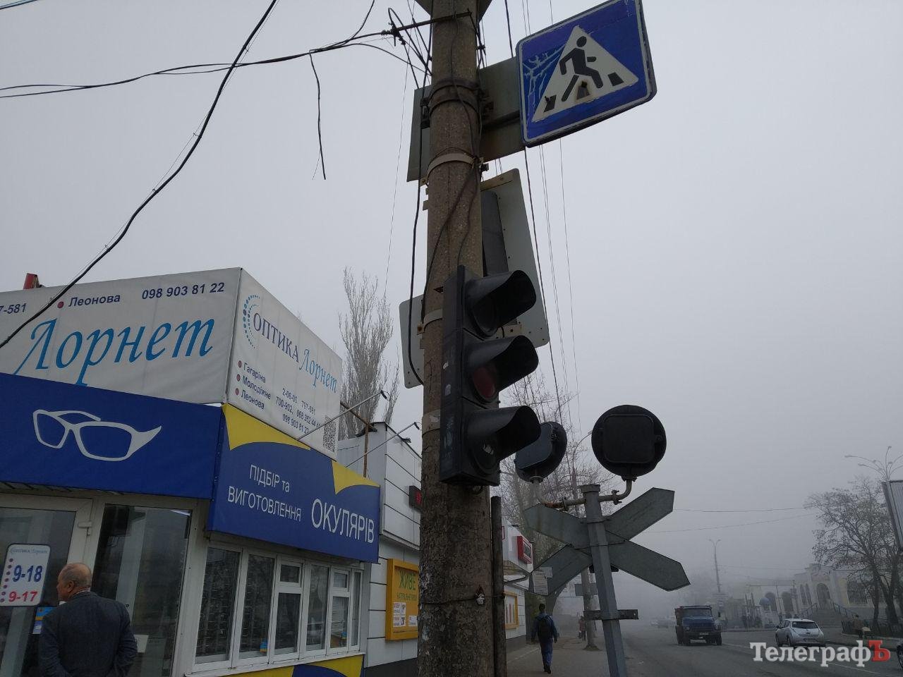 Утром 12 апреля на перекрёстке улиц Первомайской, Леонова и Халаменюка в Кременчуге, в районе железнодорожного вокзала, не работают светофоры.