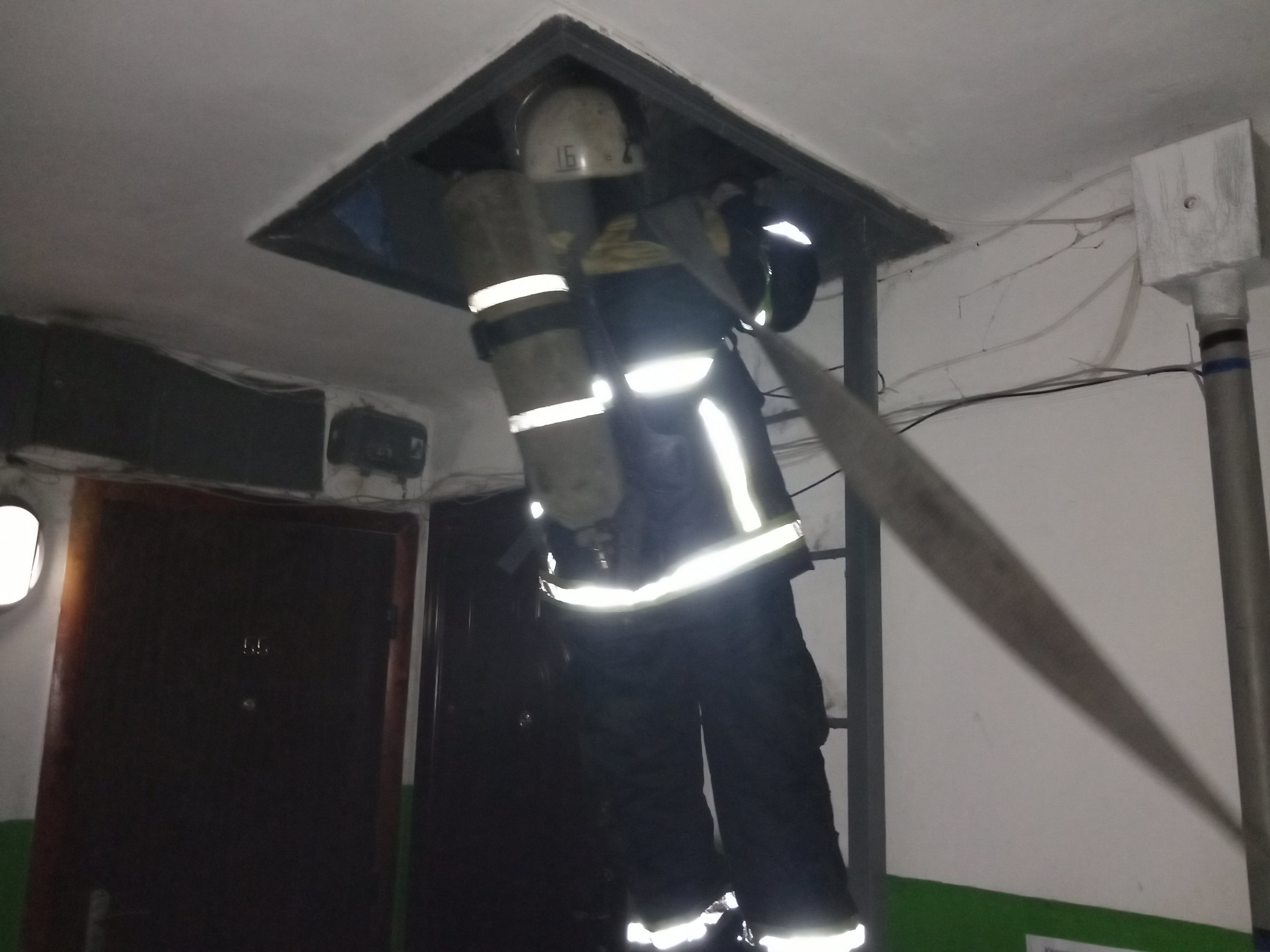 Вогнем знищено сміття на площі 1,5 кв. м, пошкоджено утеплення труб опалення на площі 1 кв. м та 1 м телевізійних кабелів.