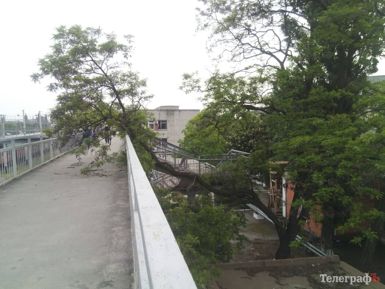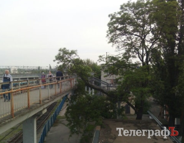 Сьогодні вночі впала величезна гілка дерева на пішохідний міст через залізничні шляхи на вокзалі станції «Кременчук». Про це «Телеграфу» розповів кременчужанин Андрій.