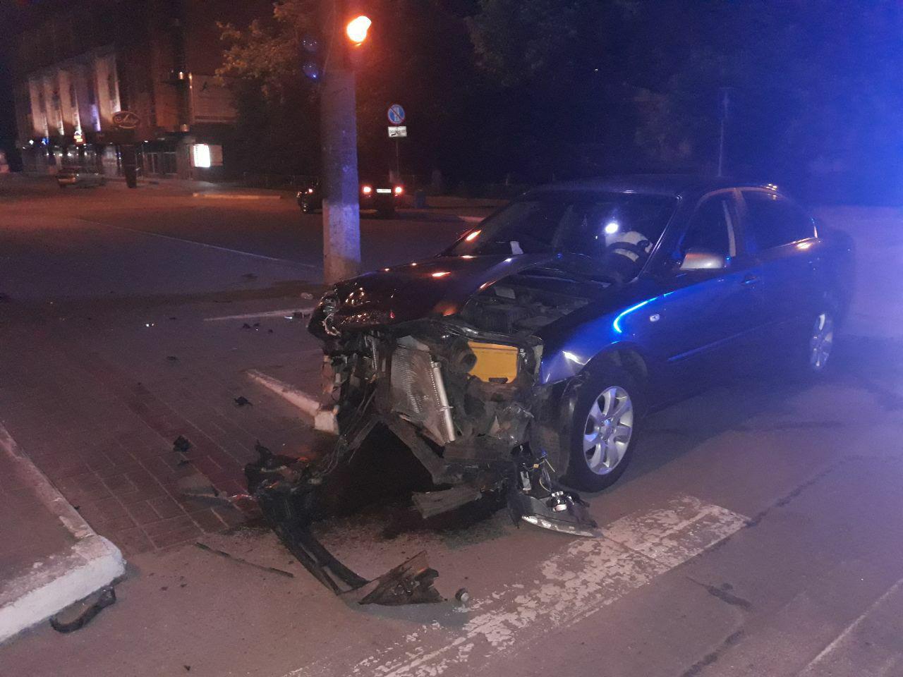 По данным полиции, Volkswagen ехал по ул. Игоря Сердюка и не уступил дорогу Kia, котораяч двигалась по ул. Шевченко. В результате столкновения Volkswagen выбросило на тротуар, где он снёс ситилайт.