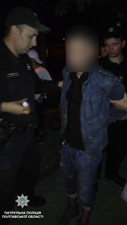 Неподалік місця злочину опинився командир роти ТОР управління патрульної поліції в Полтавській області. У патрульного був вихідний і він перебував вдома. Почув звук автомобільної сигналізації та крики. Визирнувши у вікно, правоохоронець помітив компанію дітей, котрі плакали та кликали на допомогу.