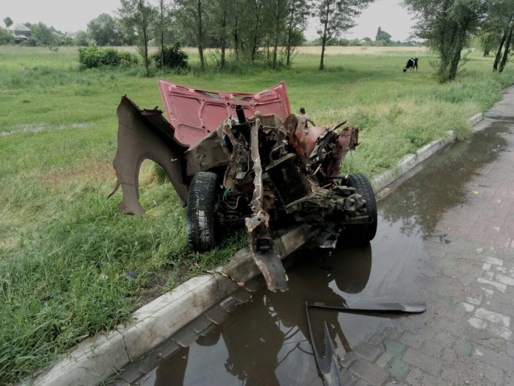 Як повідомили у прес-службі поліції, 25-річний (1994 р.н.) водій ВАЗа втратив керування після того, як автівка втрапила в калюжу. Після зіткнення його викинуло з машини, зараз він у реанімації.