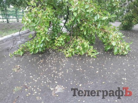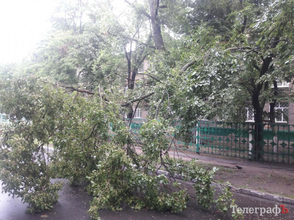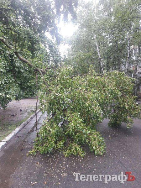 Внаслідок грози зі шквалами, яка пройшла в ніч на 5 червня, на проїжджу частину біля Кременчуцької ЗОШ №19 впала гілка. Вона відламалася від старої шовковиці, яка росте на території школи.