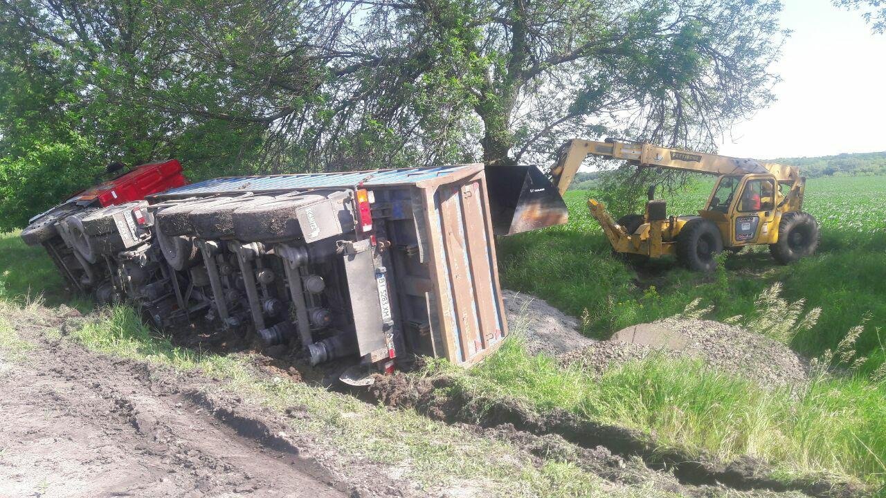 На 33 кілометрі дороги Полтава-Олександрія в кювет з’їхав автомобіль Daf з причепом. За інформацією Патрульної поліції Кременчука, водій за кермом вантажівки з власної необережності з’їхав з дороги та перекинувся.