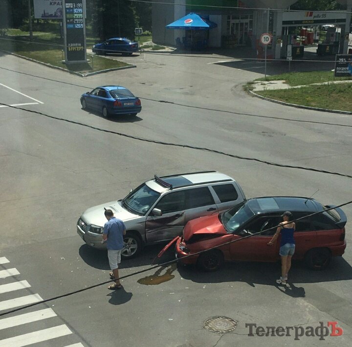 Біля Крюківського мосту на перехресті вулиць Миколаївської та Небесної сотні зіштовхнулися два автомобіля. Як повідомила