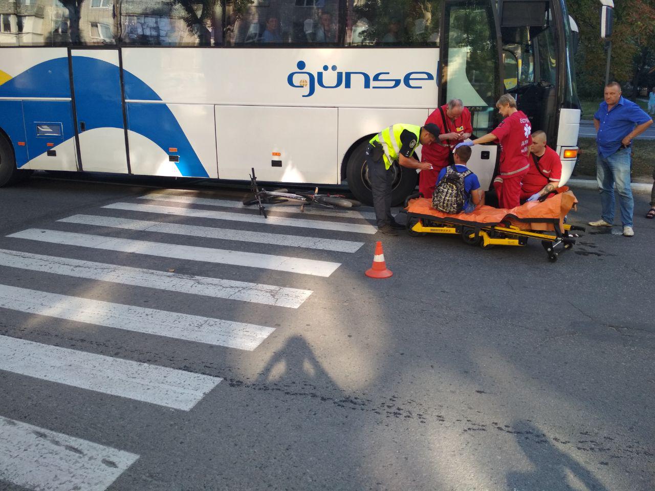 Вечером 12 августа на ул. Киевской попали в ДТП междугородный автобус компании «Гюнсел» (Днепр-Киев) и велосипедист. По словам очевидцев из сообщества взаимопомощи на дорогах Drive Help Kremen, столкновение произошло в районе пешеходного перехода. На асфальте видны следы торможения автобуса.