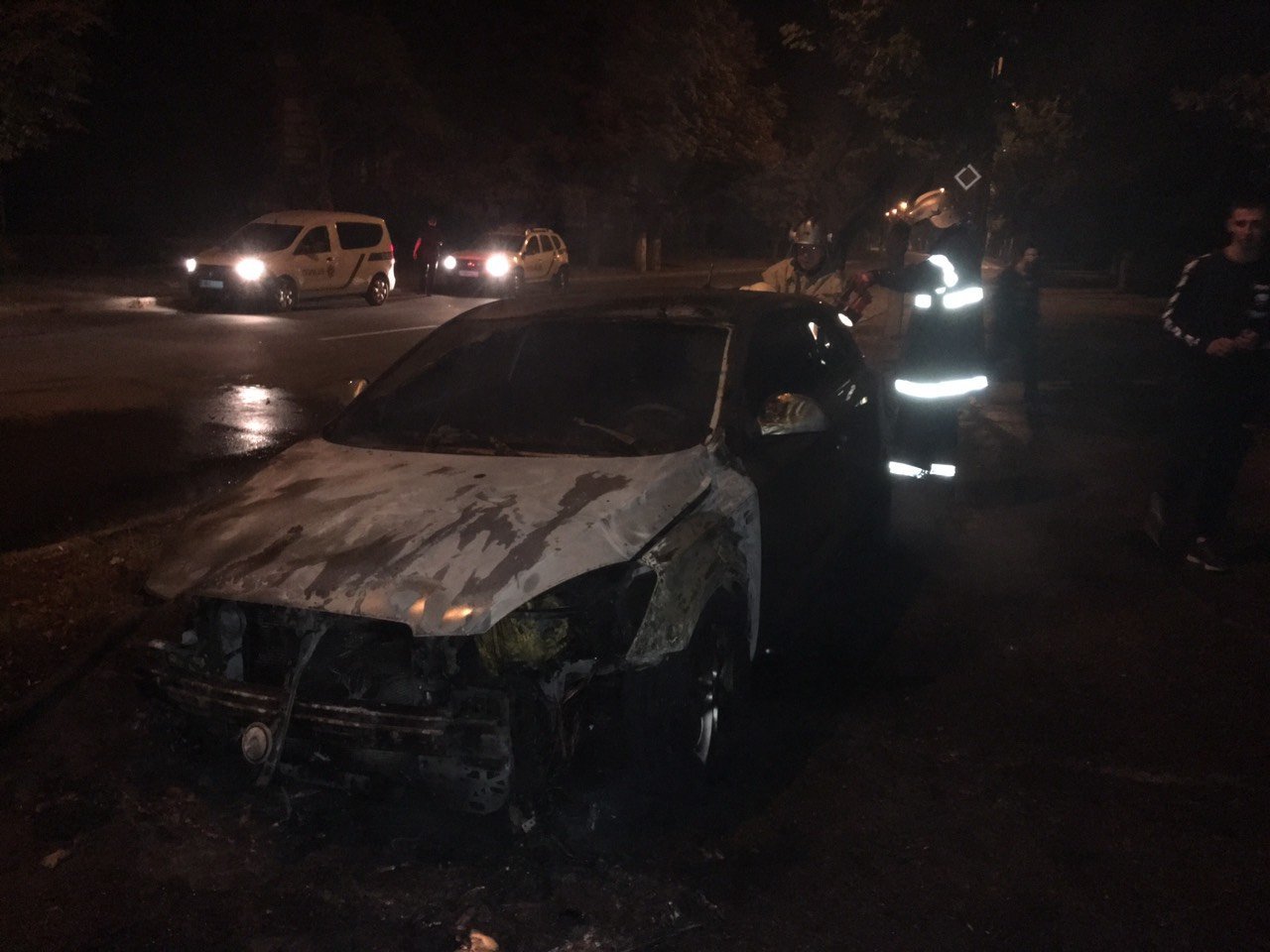 Додано: за інформацією Кременчуцького міськрайонного управління ГУ ДСНС, сірий KIA зайнявся 1 вересня близько другої години ночі. ДСНС-ники отримали виклик о 02.07 та о 02.10 прибули на місце події. Працювали 5 рятувальників, їм вдалося загасити вогонь о 02.30.
