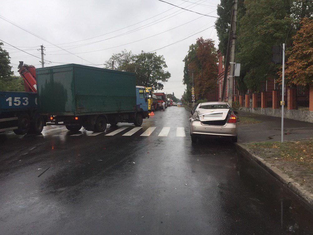 Chevrolet та вантажівки MAN. За інформацією пресслужби патрульної поліції Кременчука, водій вантажівки не впевнився в безпечності маневру та наїхав на легковик.