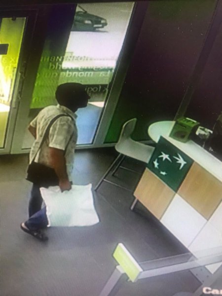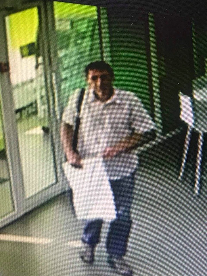 Невідомого чоловіка разом з іншими особами зафіксували камери відеоспостереження. Їх підозрюють у скоєнні шахрайських дій у селі Піщане на початку серпня минулого року.