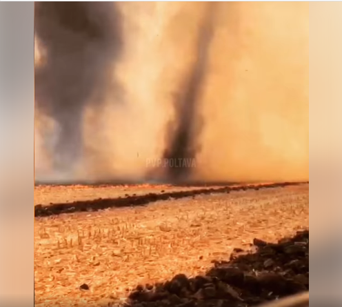 На Полтавщині по палаючому полю пронісся смерч. Відео опублікували у facebook-спільноті Підслухано в Полтаві. Вихор з диму та вогню блукав у Машівському районі.