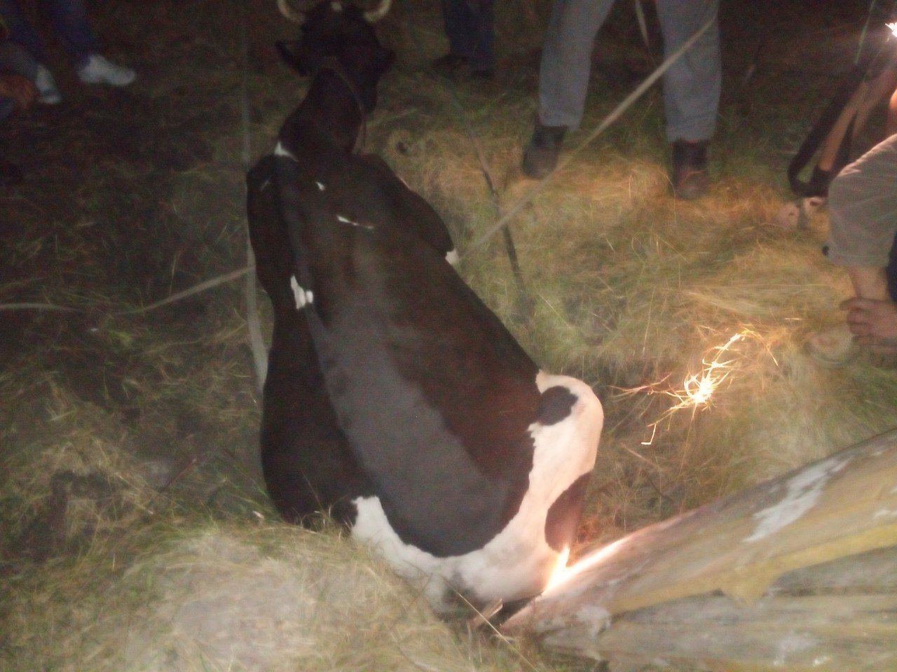 За допомогою рятувальних мотузок працівники ДСНС та місцеве населення витягли корову з глибокої ями та передали господарці.