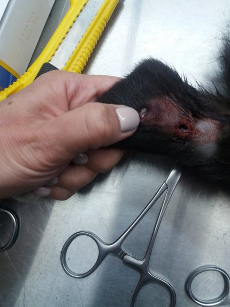 Очевидцы случившегося и опекуны животных вызвали полицию и работников «Спецсервиса». Когда сотрудники ветеринарной службы забрали щенков и провели осмотр, оказалось, что у обоих малышей пулевые ранения задних лап.