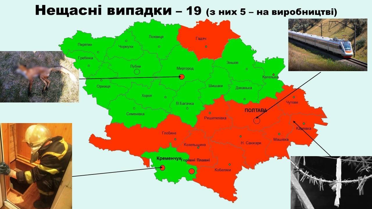 У минулому місяці у Полтавській області трапилося 19 нещасних випадків, зокрема п’ять – на виробництві. Загинули п’ять людей (із них дві дитини), травмовані 16 осіб, врятовані дві людини.