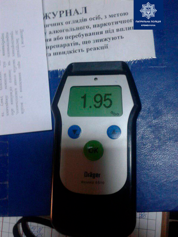 Результат огляду на стан сп’яніння у медичному закладі склав 1,95 проміле алкоголю. Це майже в 10 разів перевищує допустиму норму, яка становить 0,2 проміле.