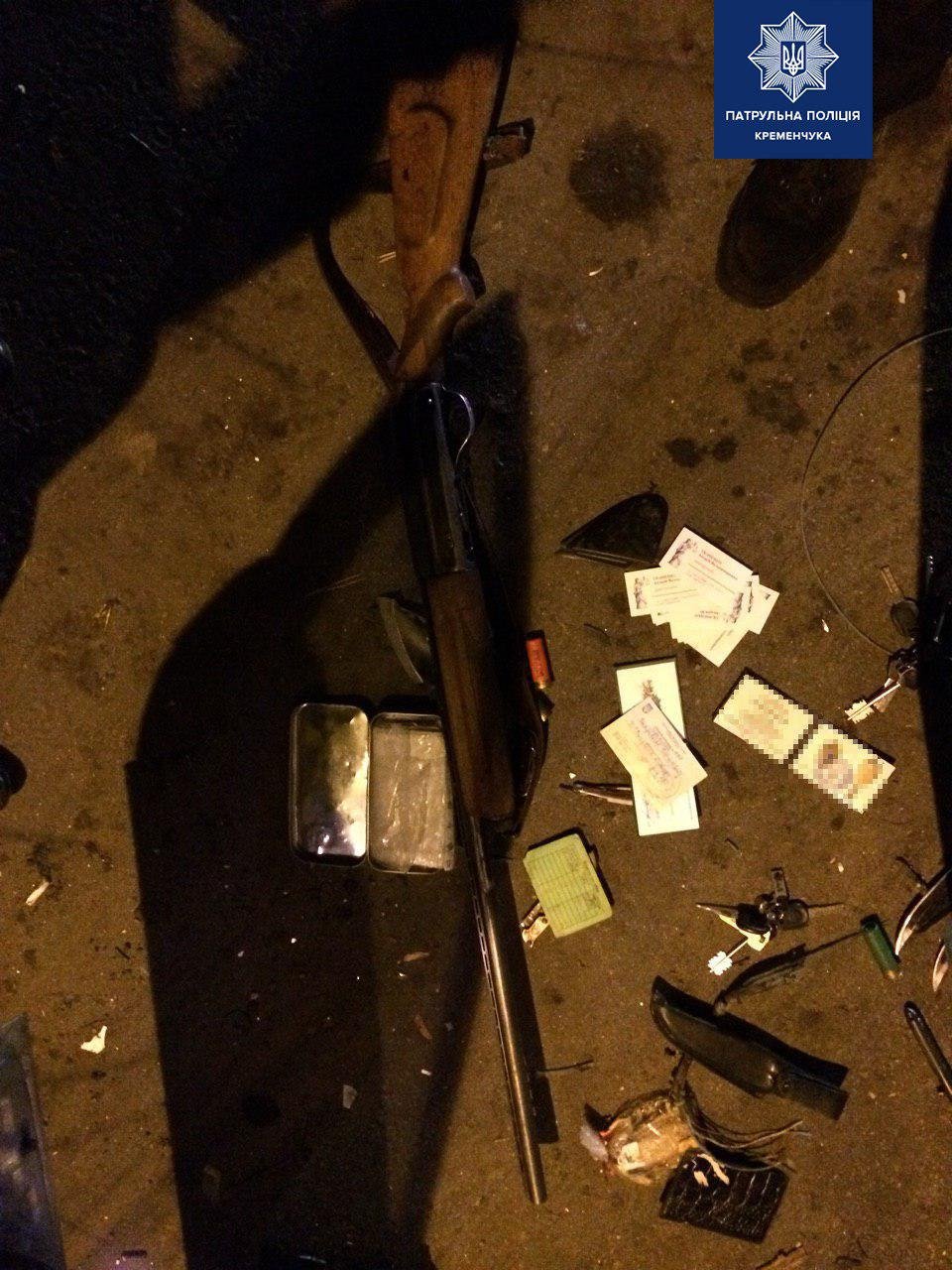 Окрім того, у салоні Kia Cerato під час перевірки машини патрульні виявили ножі, рушницю та патрони до неї. Надавати дозволи на ці предмети порушник відмовився. Для подальшої перевірки на місце події виїхала слідчо-оперативна група.