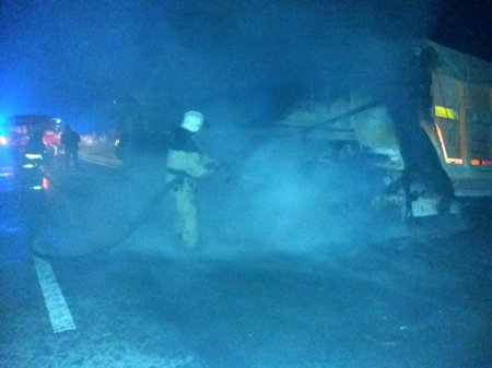 Травмованих та загиблих немає. Вогонь знищив 8 задніх гумових покришок та напівпричіп, пошкоджена пневматична система. Пожежники врятували авто від повного знищення полум’ям.