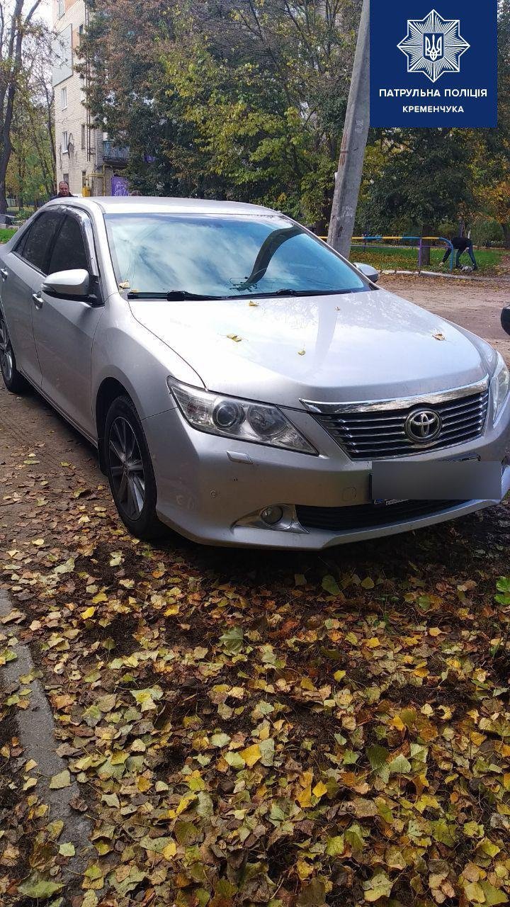 Сьогодні, 25 жовтня, у Кременчуці під час патрулювання на вулиці Павлівській (центр) патрульні побачили Toyota Camry, водій якого зупинився на пішохідному переході. За інформацією патрульної поліції Кременчука, правоохоронці звернули увагу водія на правопорушення, а також попросили показати для перевірки документи на автівку.