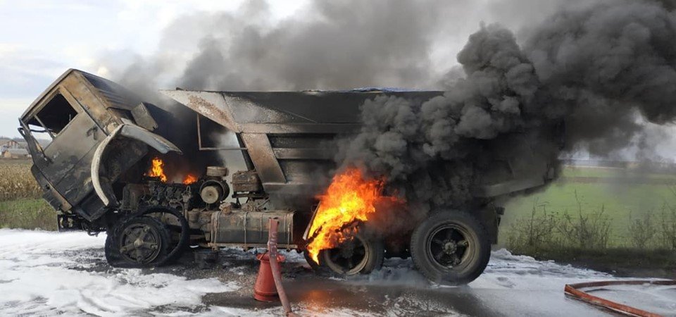 Водій вантажівки не постраждав. Поліція та ДСНСники з'ясовують причини займання.
