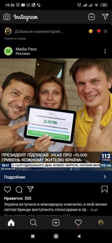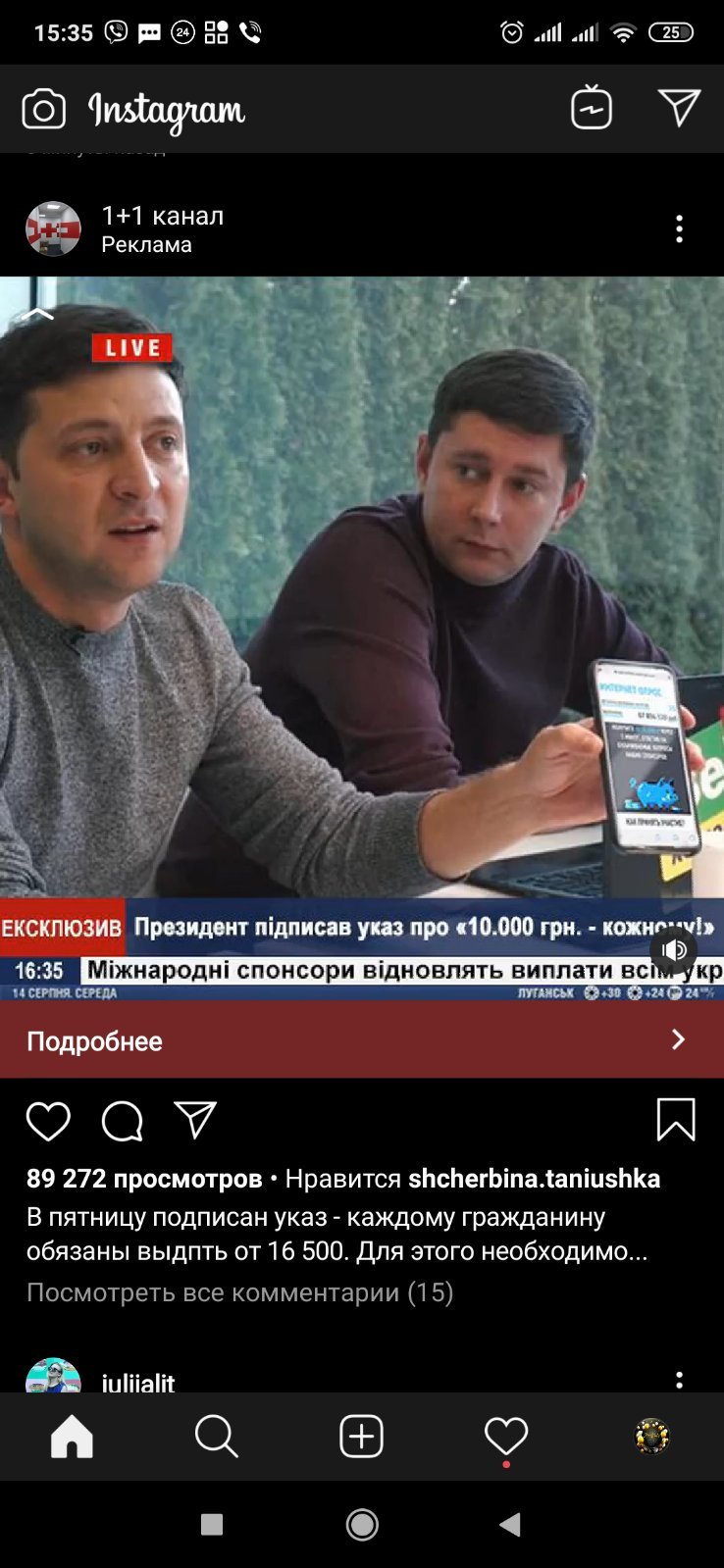 У соцмережах Фейсбук та Інстаграм з'явилися фейкові повідомлення про те, що Президент Володимир Зеленський підписав указ «про видачу 15 тисяч гривень кожному жителю України» (у деяких публікаціях названі суми 10 і 16,5 тисяч).