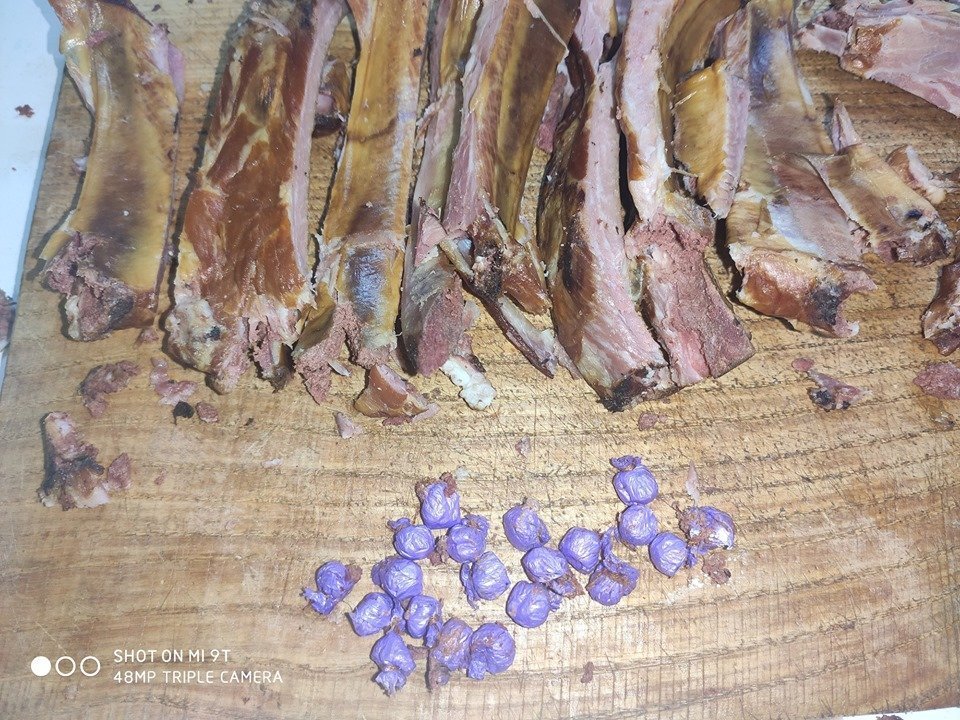 43-річному засудженому жінка передала посилку – підкопчені ребра. У середині кісточок виявили 12 поліетиленових згортків з речовиною білого кольору невідомого походження.