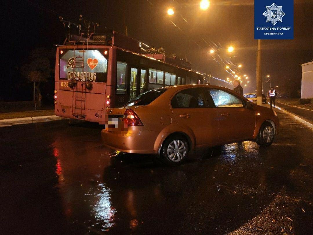 На вулиці Першотравневій відбулося ДТП без потерпілих. За інформацією пресслужби поліції Кременчука, водій Chevrolet, виїжджаючи з паркувального майданчику заднім ходом не впевневся в безпечності маневру та здійснив зіткнення з тролейбусом.