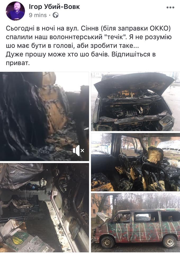 На офіційному сайті поліції йдеться, що повідомлення про загоряння мікроавтобусу «Volkswagen Transporter» на одній з автозаправок надійшло до поліції 30 листопада, близько 3-ї ранку. Вирішується питання про внесення відомостей до Єдиного реєстру досудових розслідувань за ч. 2 ст. 194 (Умисне знищення або пошкодження майна вчинене шляхом підпалу) Кримінального кодексу України.