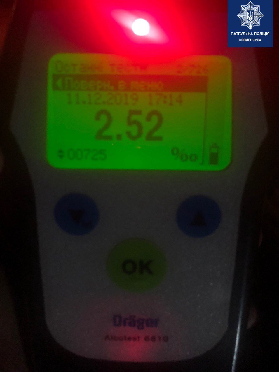 Додано: як повідомила патрульна поліція, чоловік за кермом Kia виїхав на зустрічну смугу та зіштовхнувся з іншою автівкою. Під час спілкування з водієм Kia помітили ознаки алкогольного сп'яніння. У результаті чоловік «надув» у драгер 2,5 проміле. З таким показником водій погодився.
