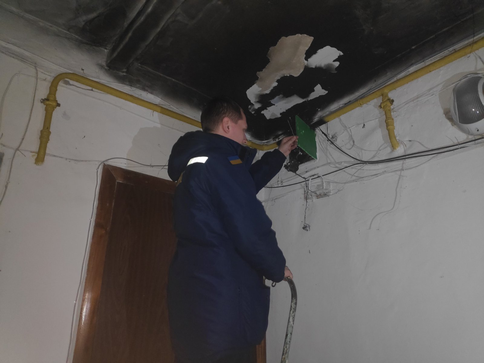 Вогонь знищив електричні автоматичні вимикачі квартир. Пошкоджена захисна ізоляція електричних проводів та закопчена стеля на площі 8 квадратних метрів.